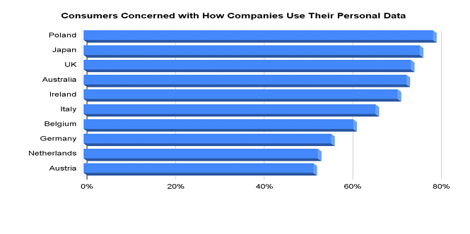 Figure 9: Average of 66% of online consumers worldwide were concerned about how companies they interact with use their data.